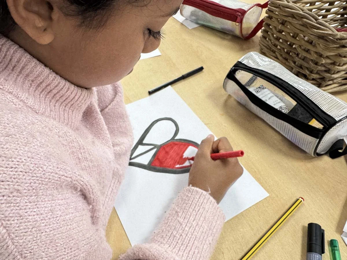 Student creating their personal peace symbols during Peace Week 2025 at St Mary’s Primary School, Moss Side, Manchester